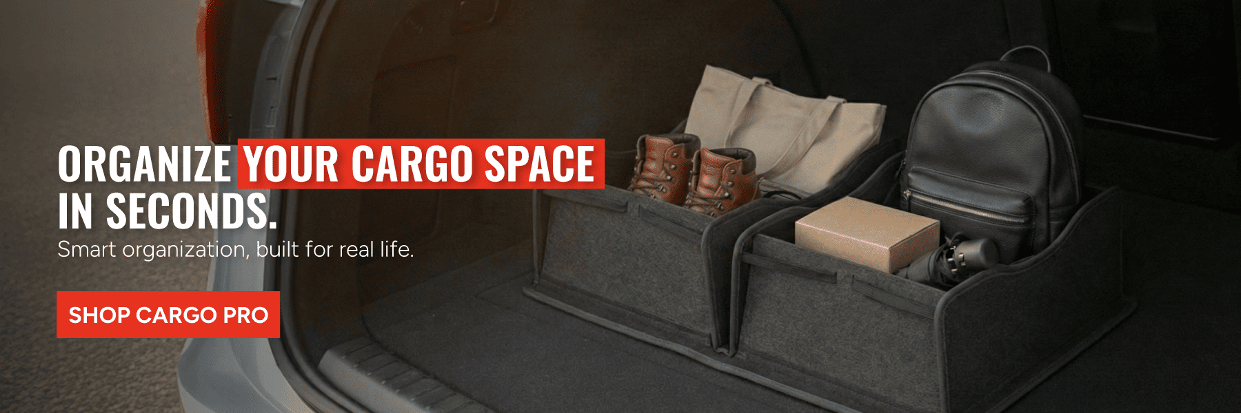 A clean and organized cargo space changes the way you drive. The Cargo Pro cargo space organizer helps transform cluttered cargo areas into a smart and efficient storage system for SUVs, sedans, and vans.